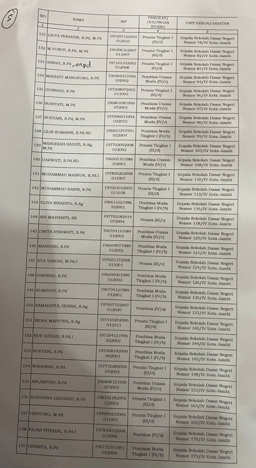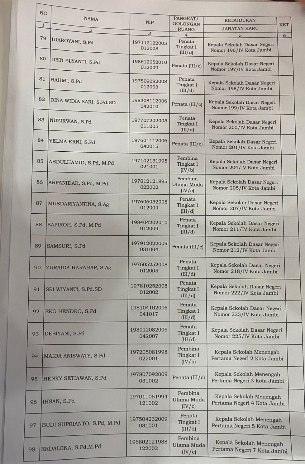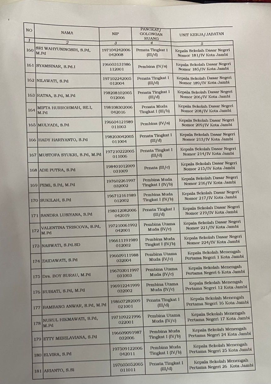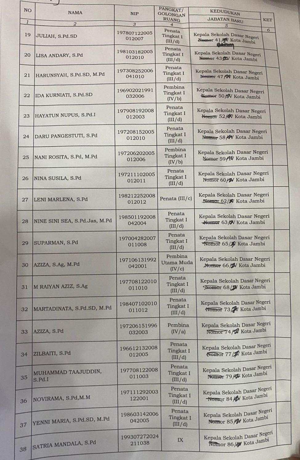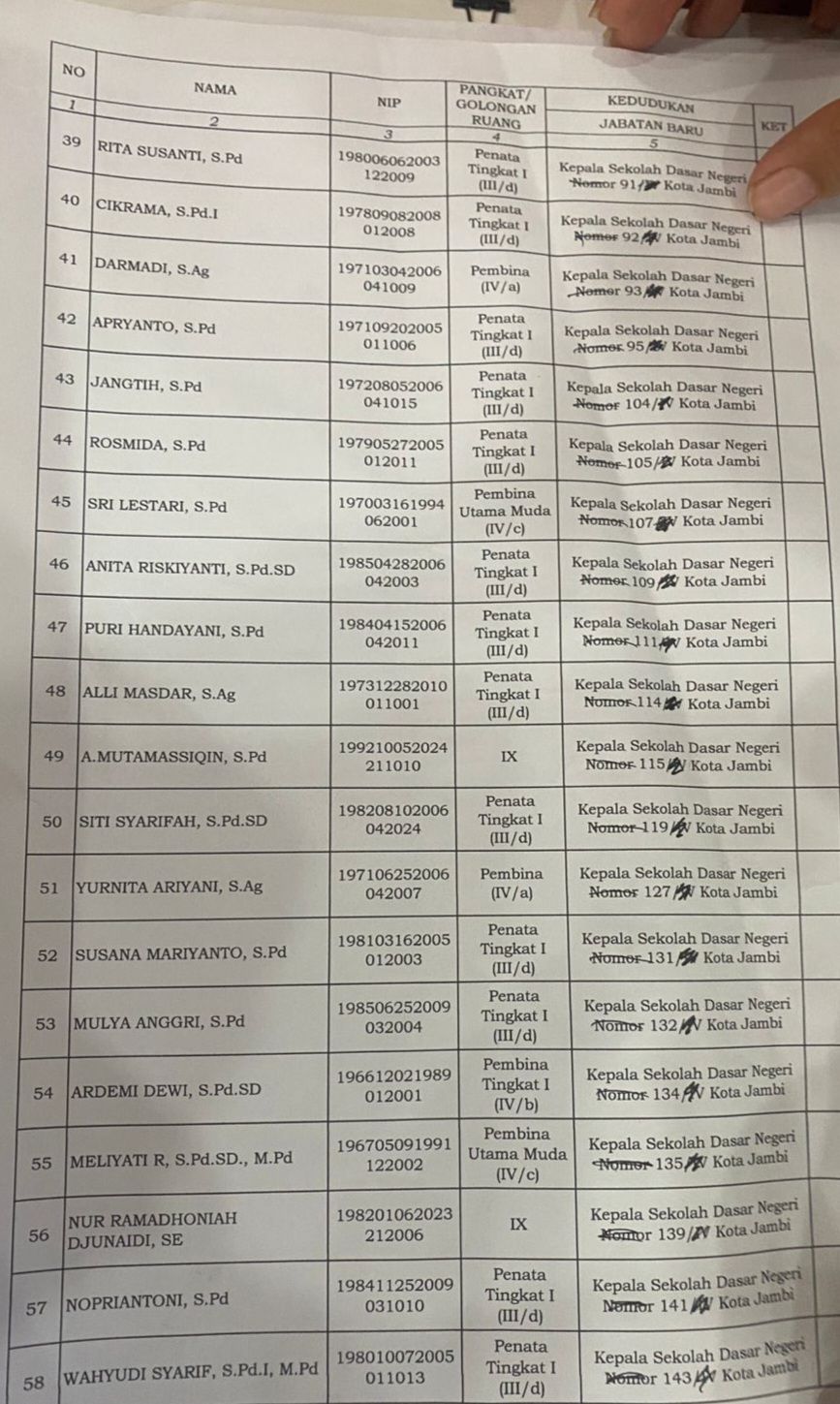 Ini Daftar Lengkap nama-nama Kepala Sekolah yang dilantik :