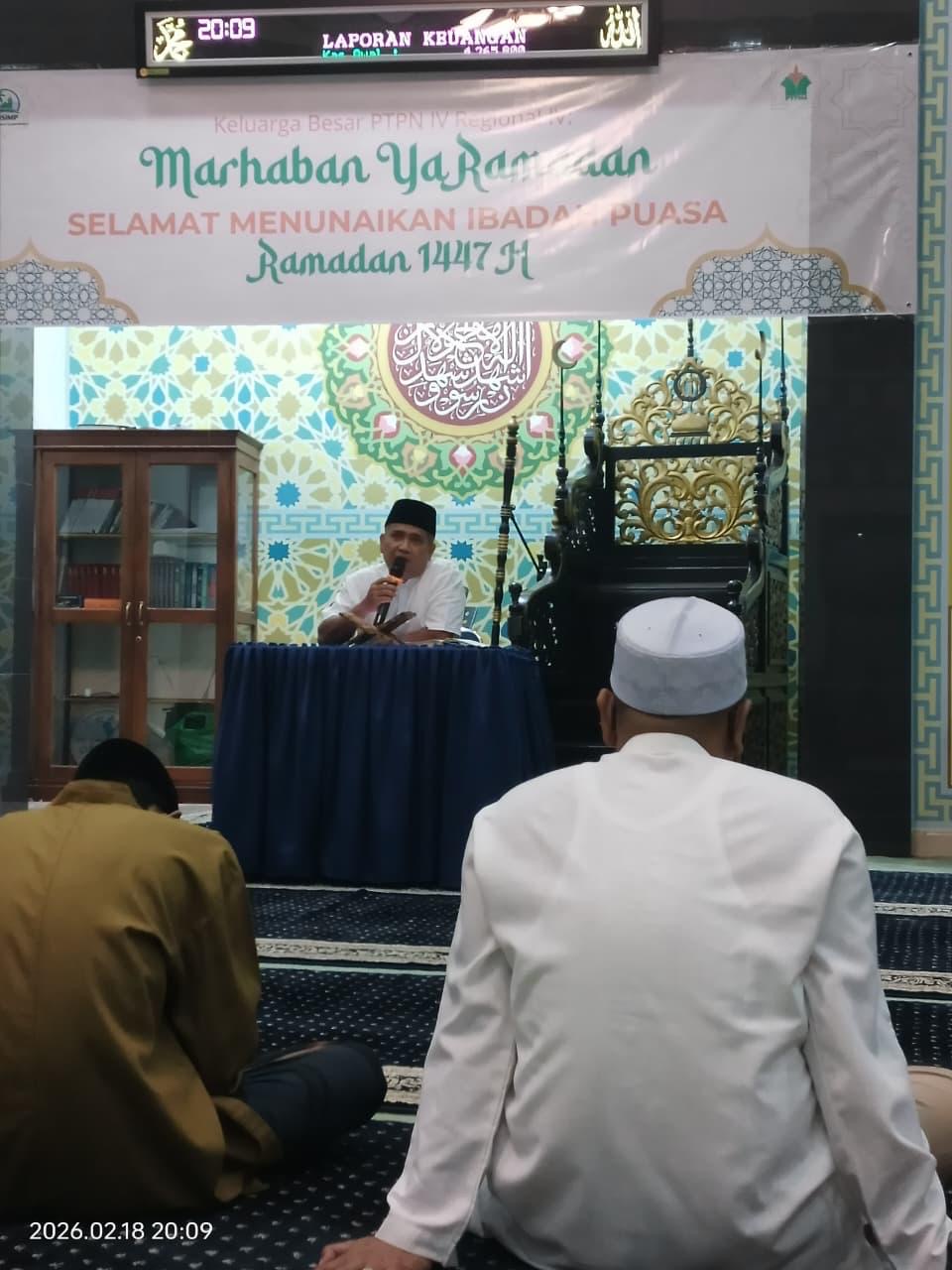 Peserta dipersilakan membaca Al-Qur’an di Masjid Munthada Sholihin yang berada di lingkungan Region Office PTPN IV Regional IV Jambi. Selain itu, karyawan juga mengikuti salat tarawih berjamaah bersama.