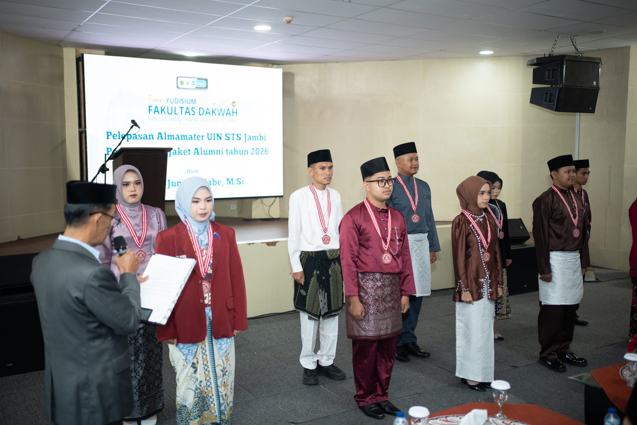 INIJAMBI – Fakultas Dakwah Universitas Islam Negeri (UIN) Sulthan Thaha Saifuddin Jambi . Pada Selasa, 21 April 2026, di sela-sela Yudisium Periode April 2026 dilaksanakan prosesipelantikan Pengurus Ikatan Alumni Dakwah Periode April 2026 yang berlangsung khidmat di Amphitheatre W C GCR Kampus II Mendalo Simpang Sungai Duren. Hadir Dekan ,Wakil Dekan dan Ketua Prodi serta para peserta Yudisiumyang berjumlah 60 orang dari 4 Program Studi yaituKomunikasi dan Penyiaran Islam , Manajemen Dakwah, Bimbingan dan Penyuluhan Islam dan Jurnalistik Islam.