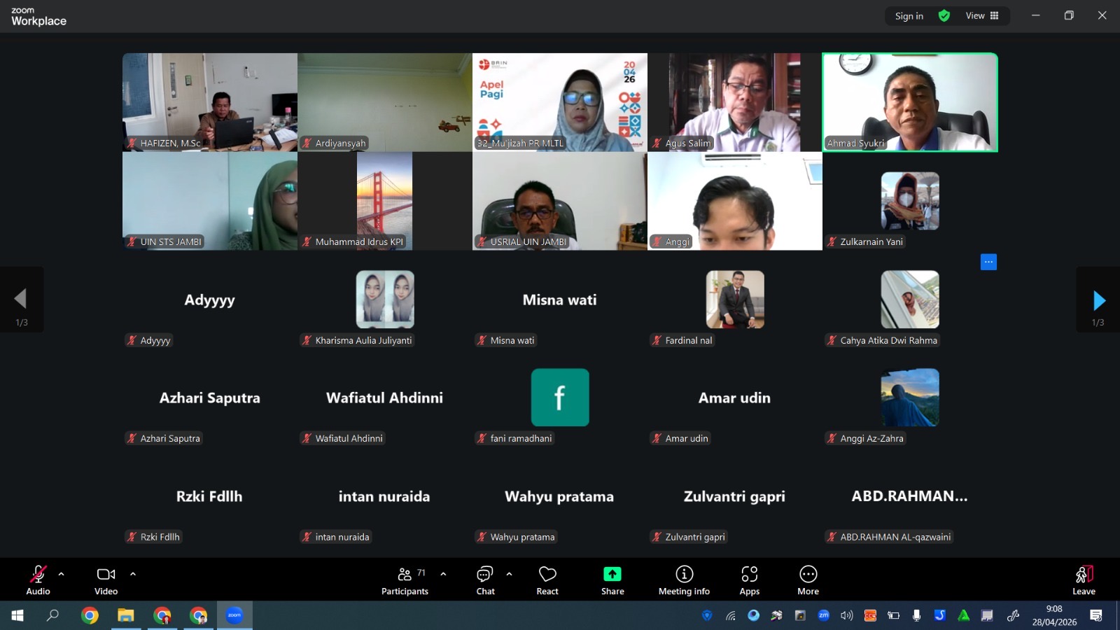Kuliah tamu ini dipandu oleh Hafizen, M.Sc sebagai moderator dan diikuti dengan antusias oleh seluruh mahasiswa semester 6 Fakultas Dakwah. Turut hadir dalam ruang virtual tersebut jajaran pimpinan fakultas, di antaranya Wakil Dekan I Dr. Syahroni, Wakil Dekan II Dr. Agus Salim, dan Wakil Dekan III Dr. M. Junaidi Habe, M.Si.